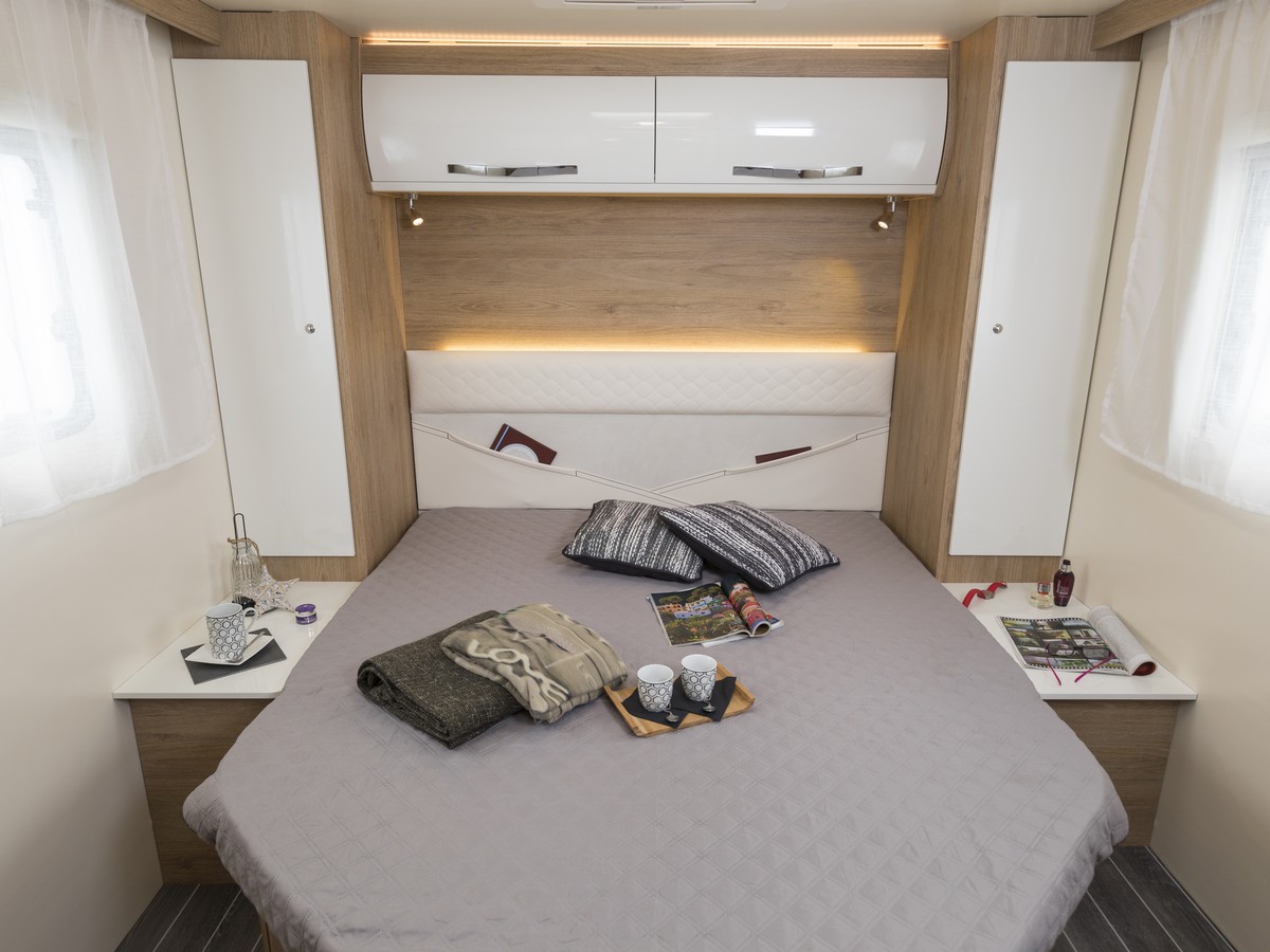 - 2 ruime handige kleerkasten naast het centraal bed goed bereikbaar opgesteld.